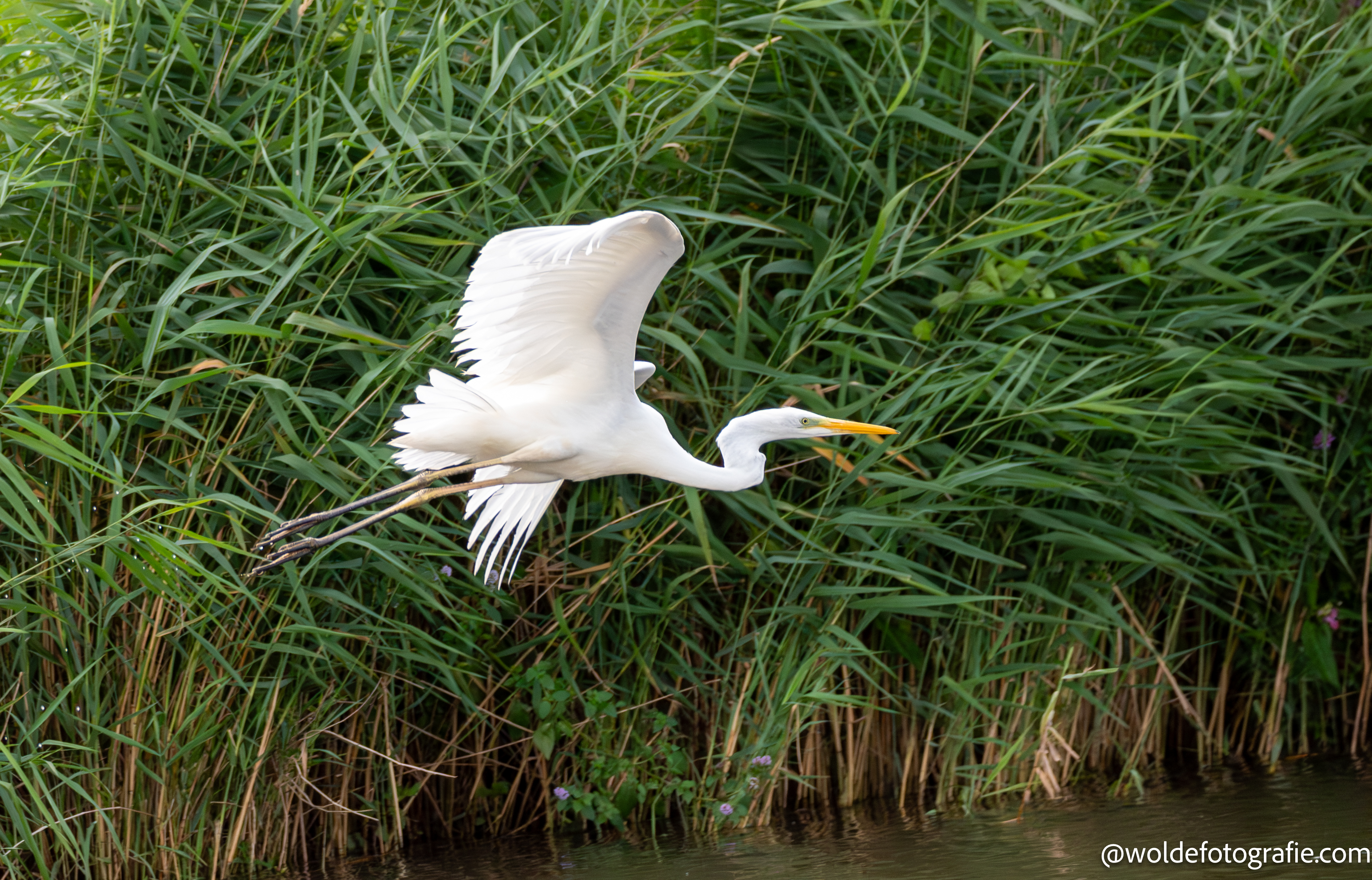Flying white Heron