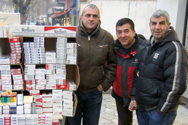 selling cigarettes in city center Peja, Kosovo